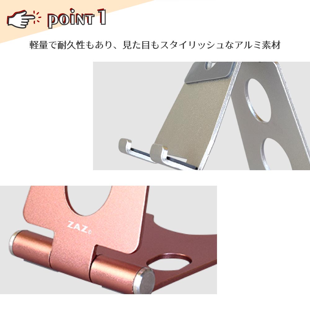 商品説明 軽量で耐久性のある、アルミ合金を使用した折り畳み式のスマートフォンスタンドです。