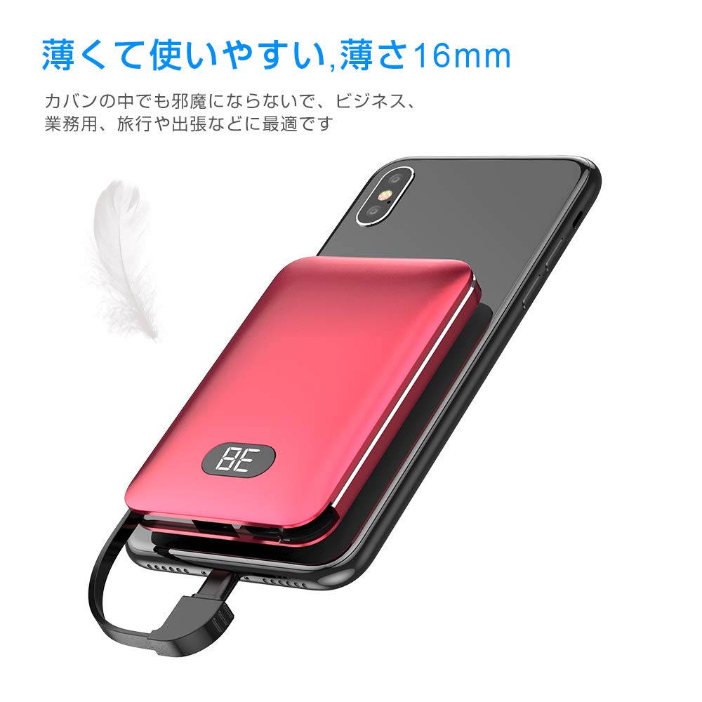 コンパクトで大容量 10000mAhの大容量モバイルバッテリー、iphone7とiPhone6を3回にフル充電できます。